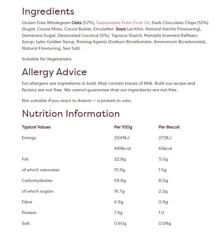 The combination of tropical coconut and rich dark chocolate is a match made in heaven, offering a taste of pure indulgence with every bite.But the best part? They're made with wholegrain oats, providing a source of fiber and energy. So you can enjoy a guilt-free treat that satisfies your cravings.