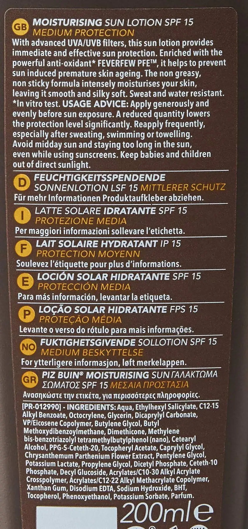 Piz Buin Moisturising Sun Lotion SPF15-200ml