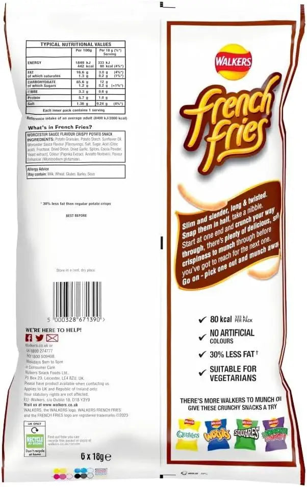 These aren't your average American fries; these French Fries offer a satisfyingly crunchy texture and unique taste that sets them apart. Slim and slender, long and twisted, they invite you to snap them in half, take a nibble, or crunch your way from one end to the other. Each bite delivers a perfect balance of salty and savoury, making them incredibly addictive. The generous bag size means theres plenty of delicious crispiness to share (or not!), perfect for movie nights, road trips, or a simple afternoon treat.